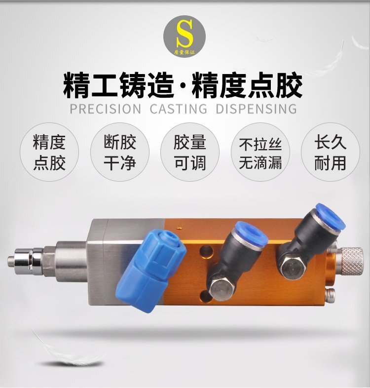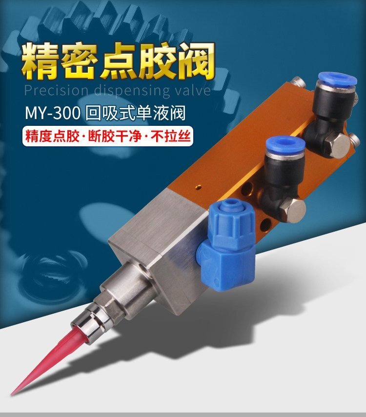 MY-300精密回吸式單液點膠閥,帶回吸功能,點膠精確、出膠順暢、不拉絲、不滴 漏;可與各種供料泵或儲料壓力桶使用,可接各式點膠針頭,可與全自動點膠機裝配數(shù)個點膠閥同時點膠作業(yè);采用鋁合金陽極化+不銹鋼優(yōu)質(zhì)材料制造,不生銹防腐蝕,適合工程/工廠長期生產(chǎn)使用;有大量現(xiàn)貨供應(yīng),歡迎咨詢采購!
